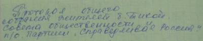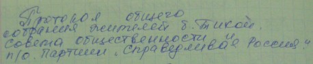 Протокол общего собрания жителей б.Тихой совета общественности и п/о партии "Справедливая Россия"