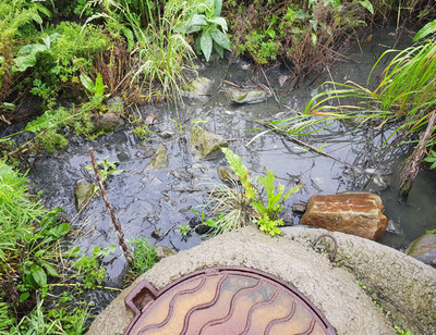 В этом колодце видно, что канализация стоит на том уровне благодаря чему она вытекает из первого колодца. Все потому, что оттуда она не закачивается в КНС-1. Таким образом, до верхней точки КНС-2 ничего или почти ничего не доходит. Возможно именно поэтому она издается такие страшные звуки (см. видео ниже), усиленно качая воздух.