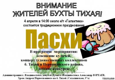 4 апреля в 14:00 на площади у Галактики состоится празднования Пасхи на б.Тихой!